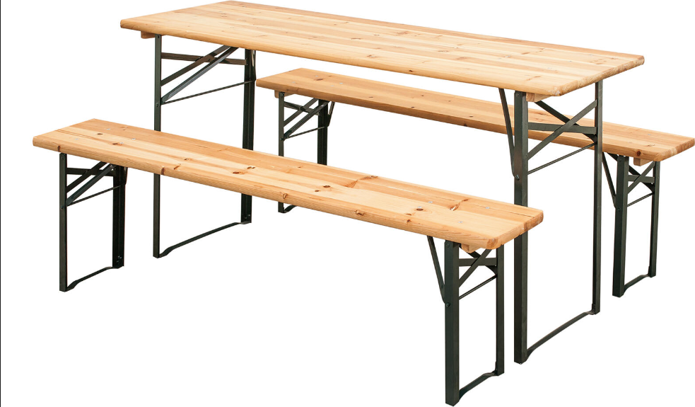 Co by byla párty nebo oslava, kdybyste měli sedět na mokré zemi ? Jasně, čundr je romantika, ale není pro každého. Rozměry: stůl - 200 x 50 x 77 cm, lavice - 200 x 25 x 46 cm.